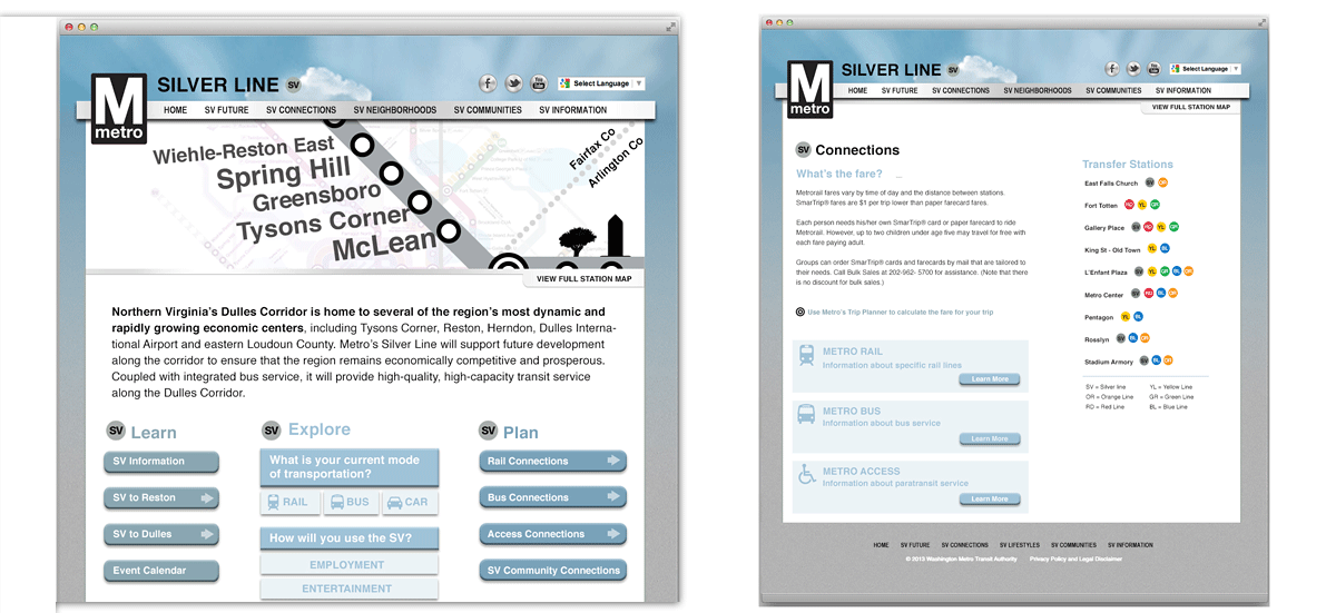 Informational web site designed to promote Metro’s new Silver Line, generate a neighborhood buzz and provide resources for phases of development.